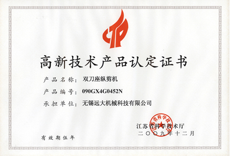高品證書(shū)(高強(qiáng)度45飛剪機(jī))